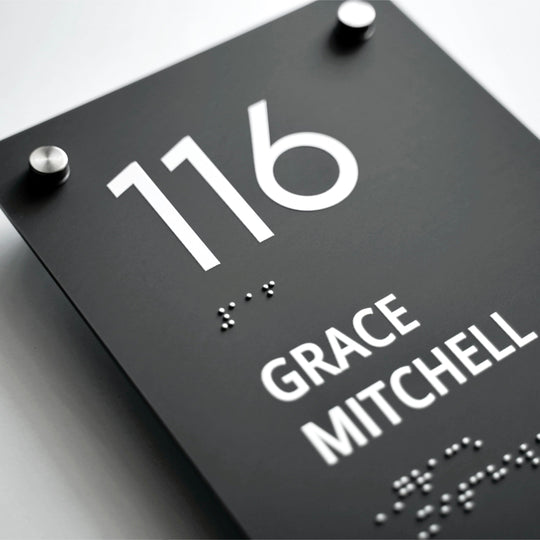 Важно также правильно выбирать высоту монтажа. Указатели с номерами комнат или кастомные таблички на двери должны быть на уровне глаз, чтобы оставаться хорошо видимыми для посетителей и не вызывать необходимости наклоняться или задирать голову. В офисах и общественных зданиях существуют даже рекомендации по стандартной высоте, которые помогают сохранять единую логику в расположении таких элементов. Это облегчает навигацию и создает ощущение упорядоченности.