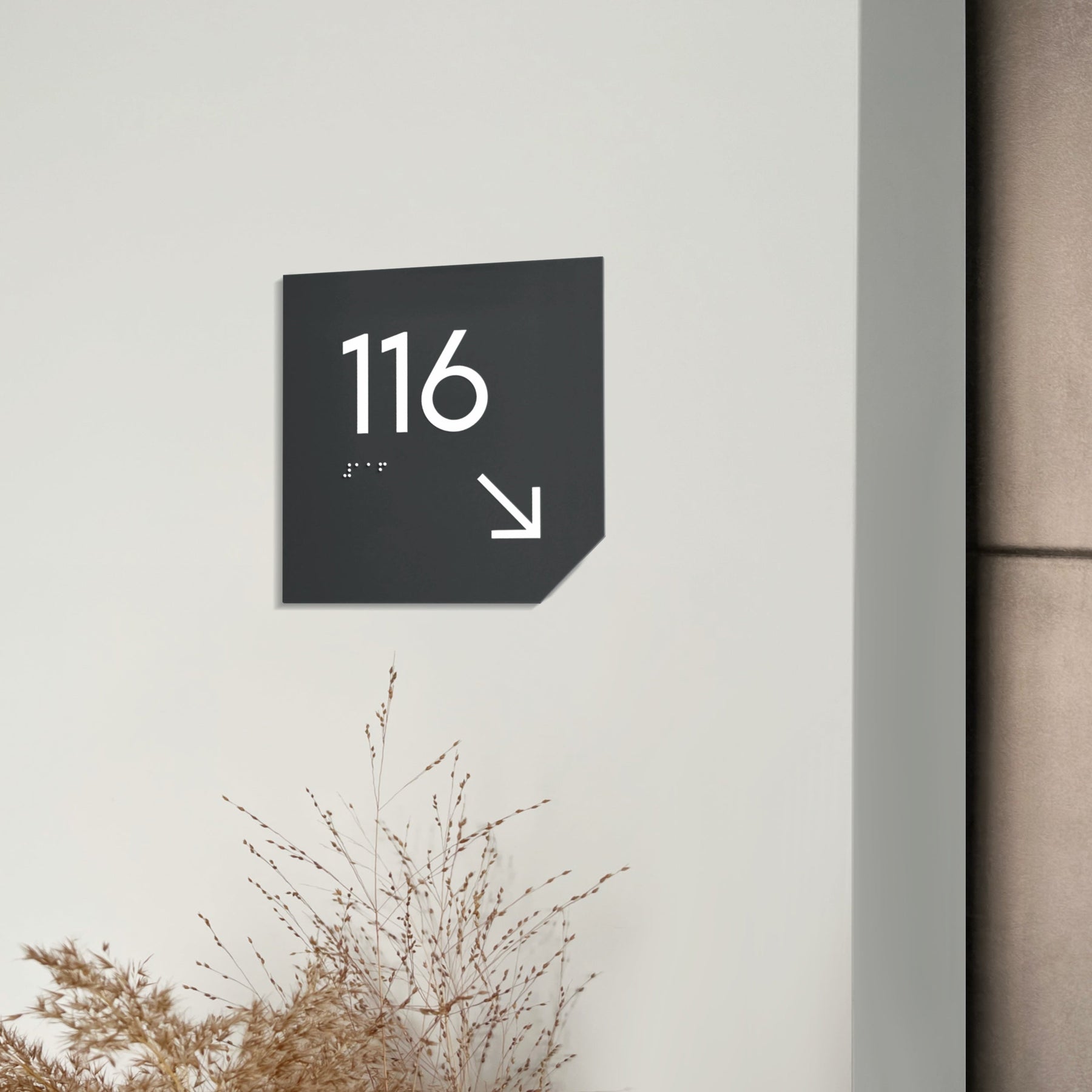 Обновите интерьер с помощью современной таблички с номером в матовом сером дизайне Clear. Она идеально подходит для отелей, офисов, учебных заведений и жилых комплексов, обеспечивая отличную видимость, чистую эстетику и лёгкую установку.