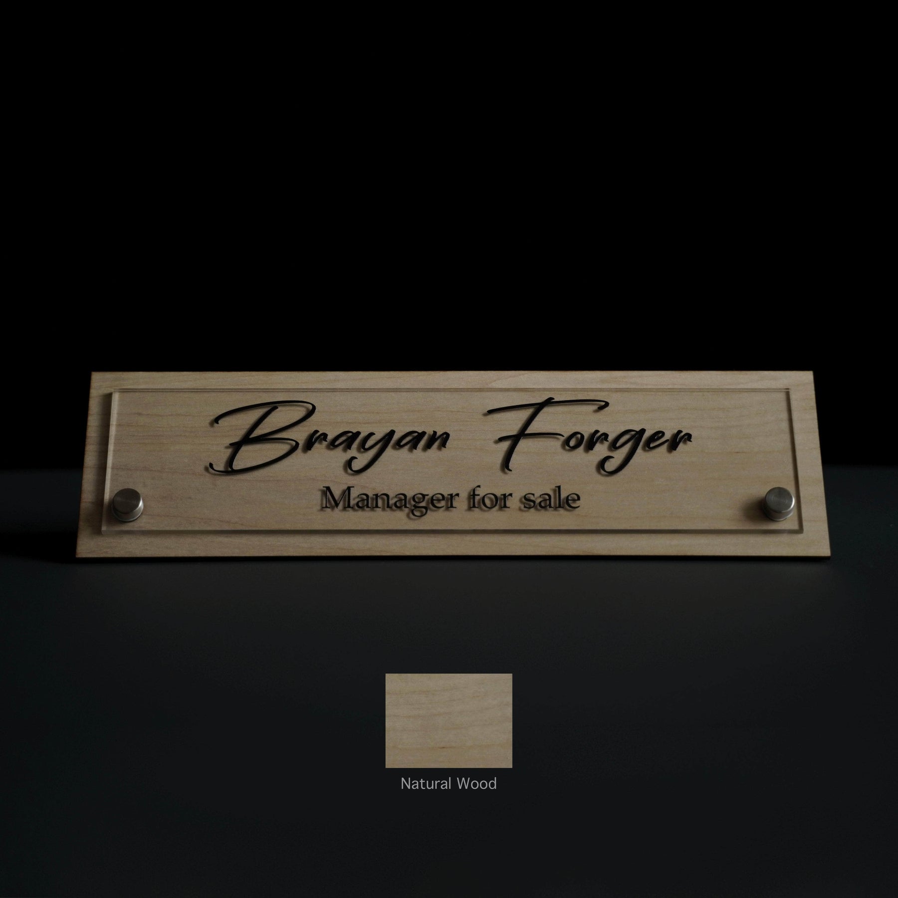 Прикрасьте своє робоче місце цією вишуканою табличкою з дерева та акрилу, яка гармонійно впишеться у будь-який інтер'єр офісу. Цей професійний елемент декору столу не тільки підкреслить ваш простір, але й відобразить ваш індивідуальний стиль та увагу до деталей. Будь то на роботі або вдома, іменна табличка на стіл від Bsign перетворить звичайний стіл на заяву про професіоналізм та індивідуальність.